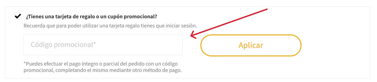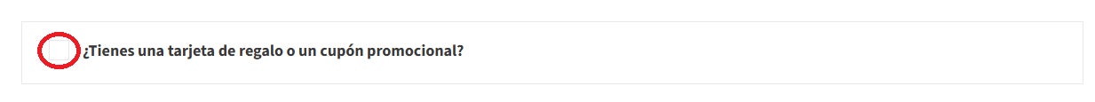 - Después de seleccionar la dirección de envío, aparecerá el mensaje: "¿Tienes una tarjeta de regalo o un cupón promocional?".