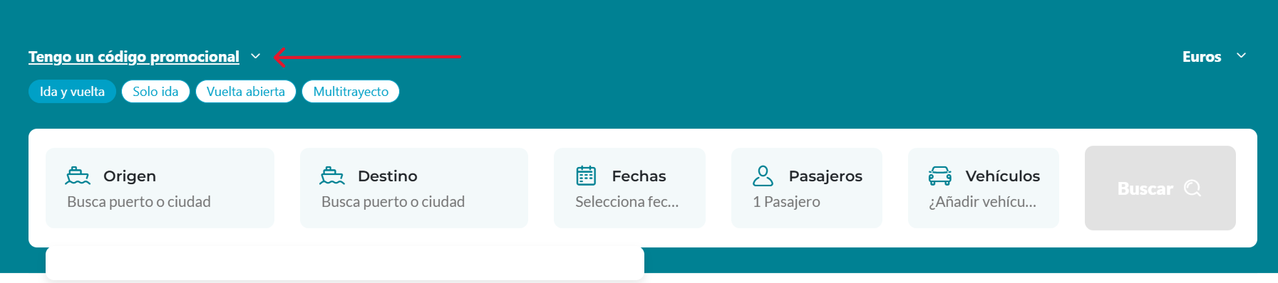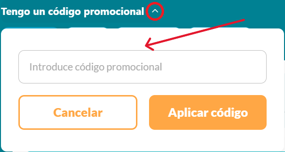 - Al seleccionarlo, encima del cuadro en el que se añade el lugar de origen, aparecerá la frase «Tengo un código promocional».