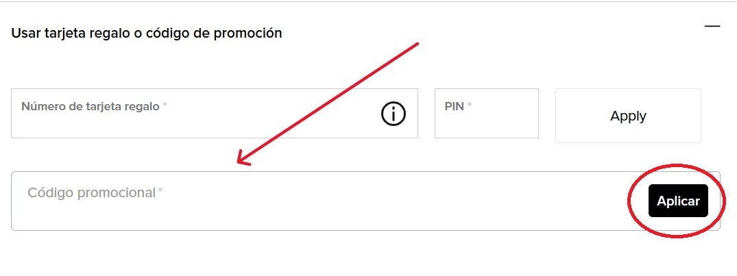 - Aquí encontrarás una indicación que dice «Usar tarjeta regalo o código de promoción».