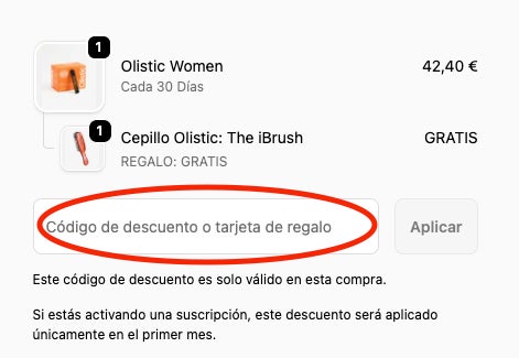 Cómo aplicar un código descuento Olistic
