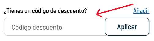 - En la página de pago encontrarás un espacio para «añadir un código de descuento».