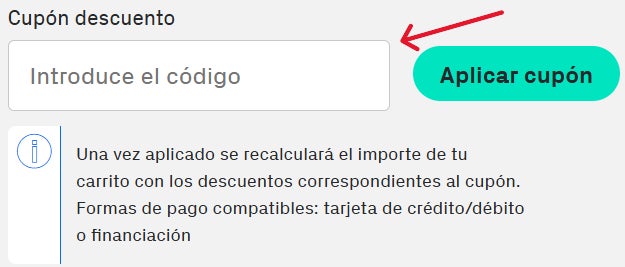 - En este punto, puedes introducir el cupón que has copiado: pégalo y verás el precio reducido del total.