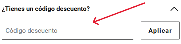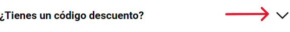 - Una vez en la página de pago, haz clic en la pequeña flecha negra situada junto al texto «¿Tienes un código de descuento?».