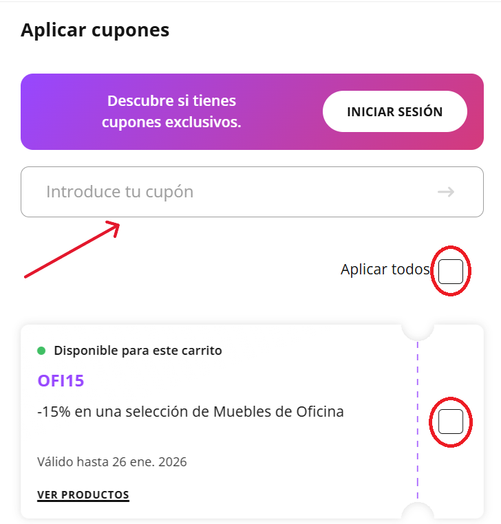 - A la hora de pagar, haz clic en «Aplicar cupones».